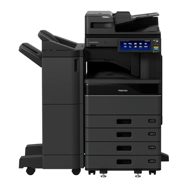 The Toshiba e-Studio 6525 AC can print up to 65 pages per minute with a 1,200-input paper capacity and 6GB RAM which will save your business time. Featuring a 10.1-inch tablet-style touch colour panel for easier operation and a 1,200 x 1,200 dpi print resolution for high-quality prints. This printer also comes with Remote Assist and e-Cloud Connect to allow for service and assistance when you need it.