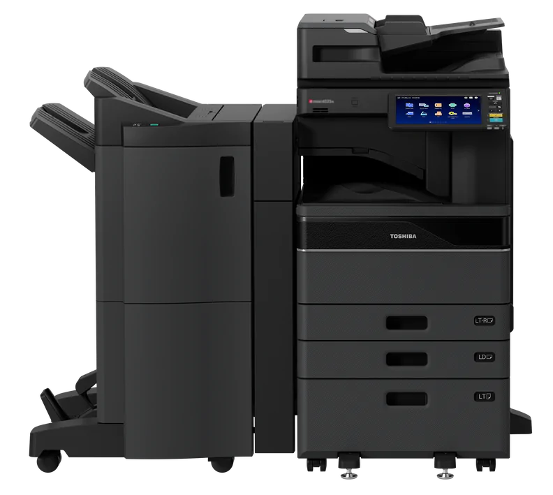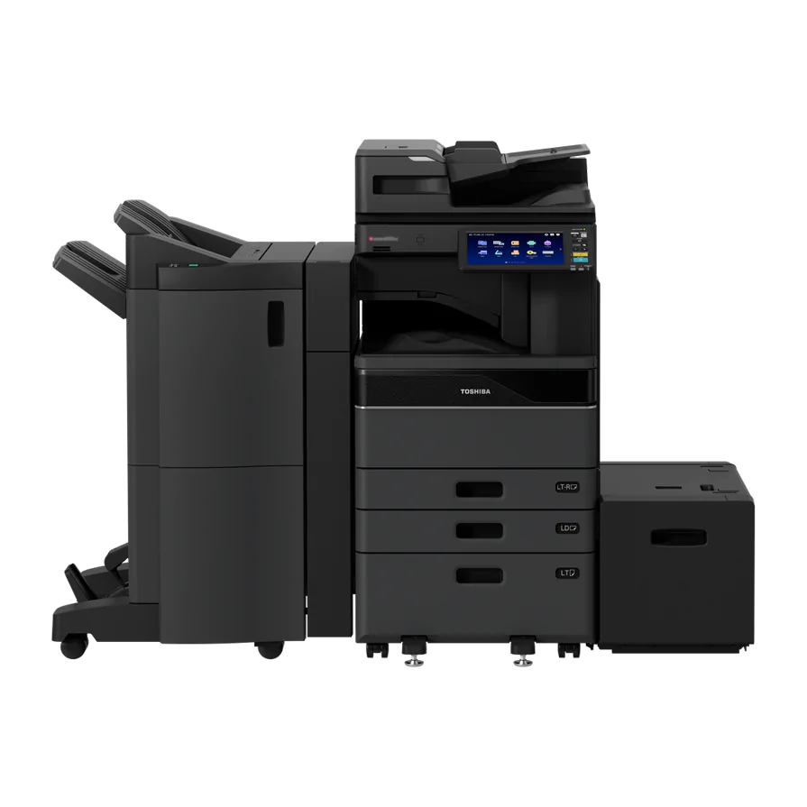 With a 10.1-inch tablet-style colour panel and 6 GB RAM, the Toshiba e-Studio 5528A fits your printing needs. Printing 55 pages per minute with a 1,200 x 1,200 dpi print resolution, and a 1,200-input paper capacity, this powerful printer keeps things easy and efficient.