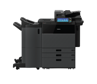 The Toshiba e-Studio 6528A reaches a printing speed of 65 pages per minute, with a short 26-second warm-up time. This powerful printer has 6 GB RAM, a 10.1-inch tablet-style colour panel, and both Remote Assist and e-Cloud Connect to make it more efficient than before.